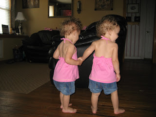 I bought the girls potties and showed them how to use it once. Later that afternoon I didn't put their pants back on after I changed their diapers. This is what I found them doing...